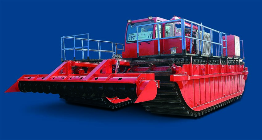 XWQY100型兩棲旋挖式清淤機是應用戶要求而專門設計的一種大型池塘水下清淤機械。該機以浮箱履帶為基礎實施工作移位,用旋挖頭切割和收集水下淤泥,用泥漿泵將泥漿吸走并排出,送到指定的排泥場,從而實現對大型池塘清淤的目的。    該機也可用于其他具有相似條件的河道、溝渠等淺水水域進行清淤作業。